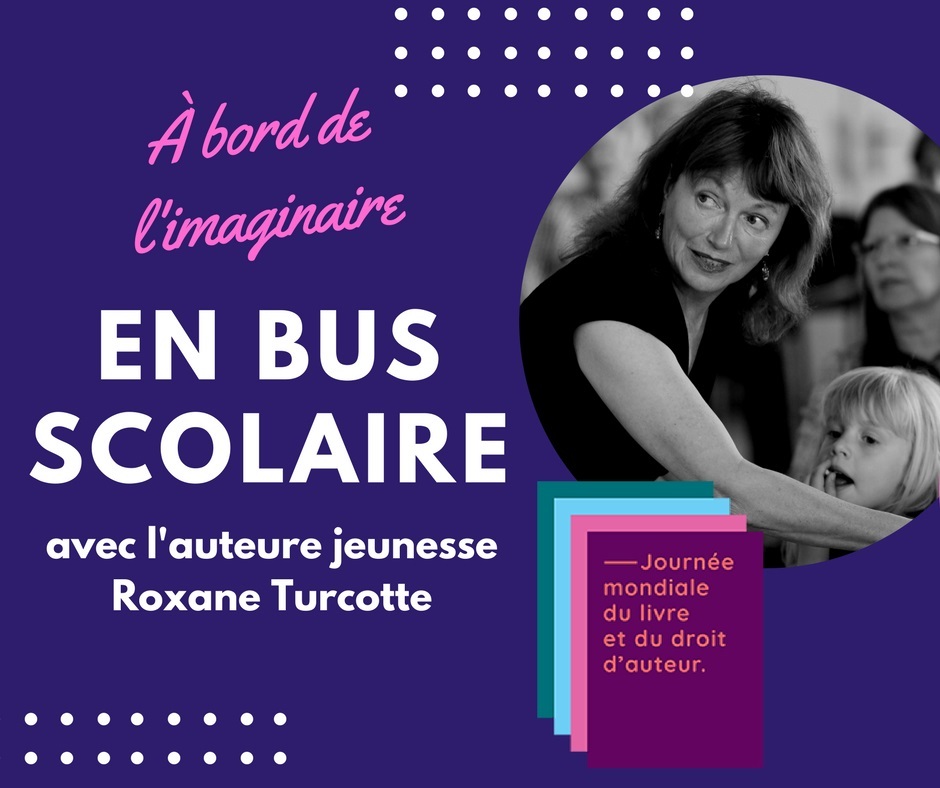 Le 23 avril dernier, alors que nous célébrions la Journée mondiale du livre et du droit d’auteur, l’auteure jeunesse Roxane Turcotte est montée à bord d’un autobus scolaire transportant des élèves des écoles Sainte-Thérèse-de-l’Enfant-Jésus et alternative de la Fourmilière pour leur faire la lecture.