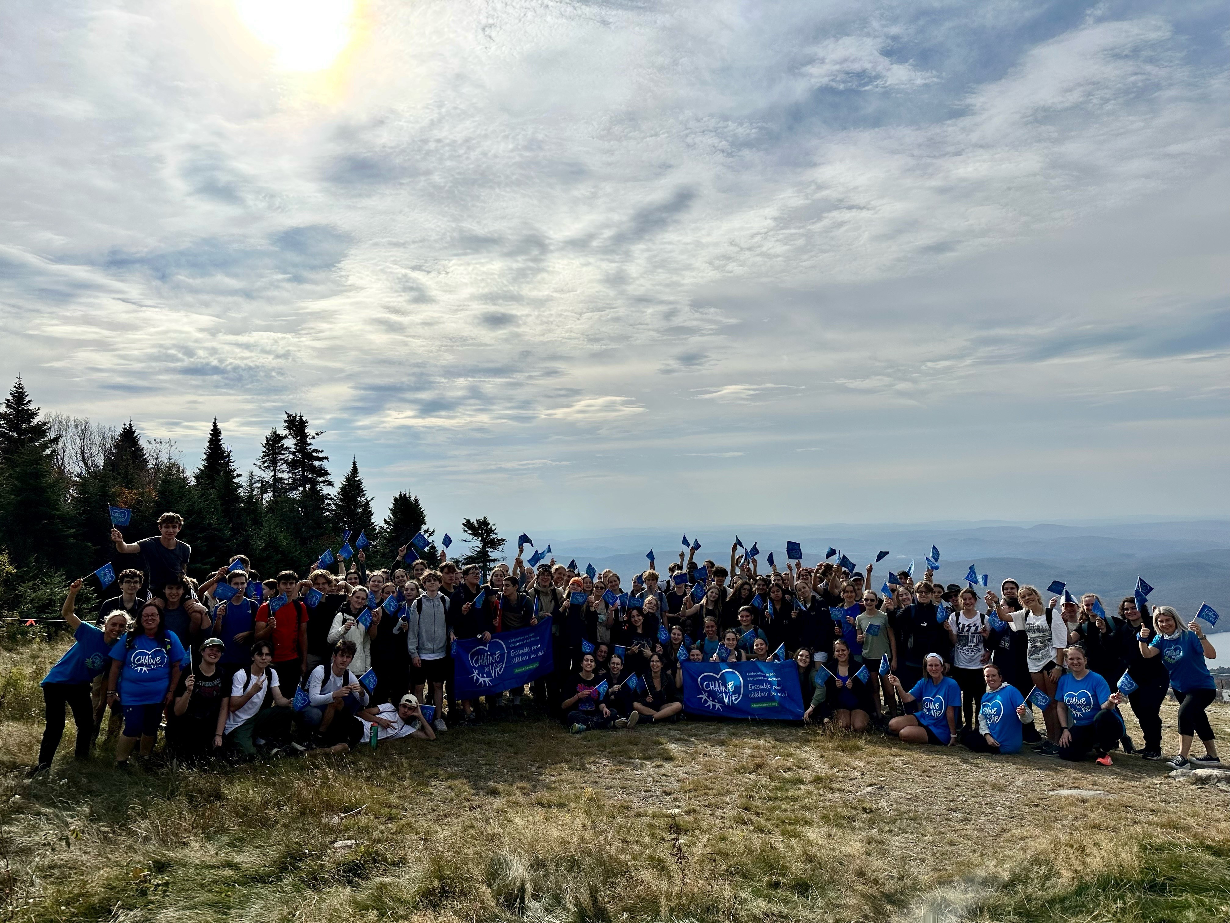 Le 5 octobre, 106 étudiants du programme PEI, accompagnés de sept enseignantes dévouées, ont relevé un défi remarquable en gravissant le sommet du Mont-Tremblant dans le cadre du « Défi Chaîne de Vie ». Avec cet exploit physique, les étudiants avaient comme but de sensibiliser la communauté à la cause, établissant un lien symbolique entre l’ascension d’une montagne et la bataille courageuse des personnes en attente sur les listes. #Chaînedevie