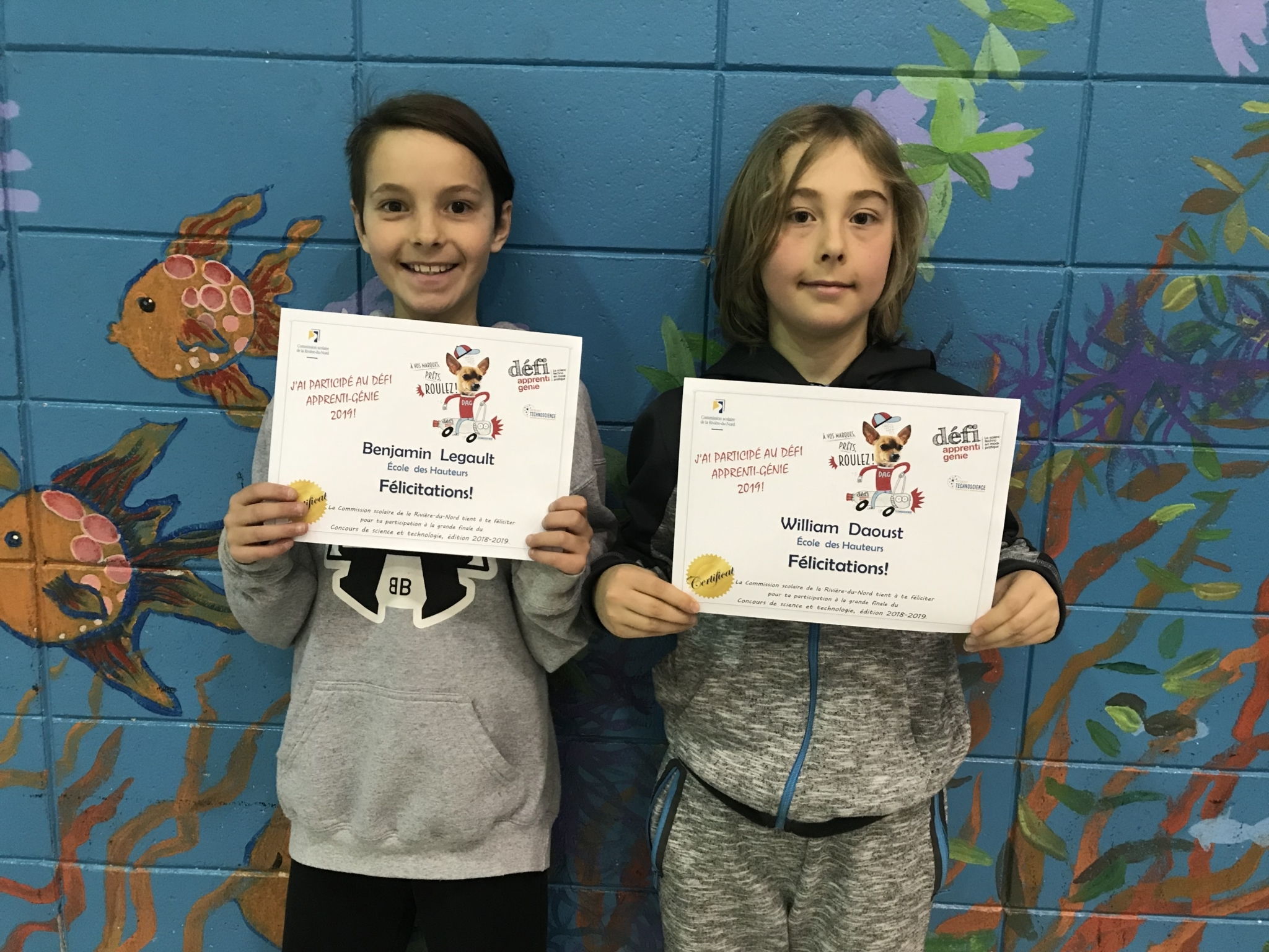 Pour une deuxième année consécutive, l’école des Hauteurs sera représentée à la finale régionale du défi Apprenti-Génie qui se déroulera le 17 mai prochain à Deux-Montagnes.