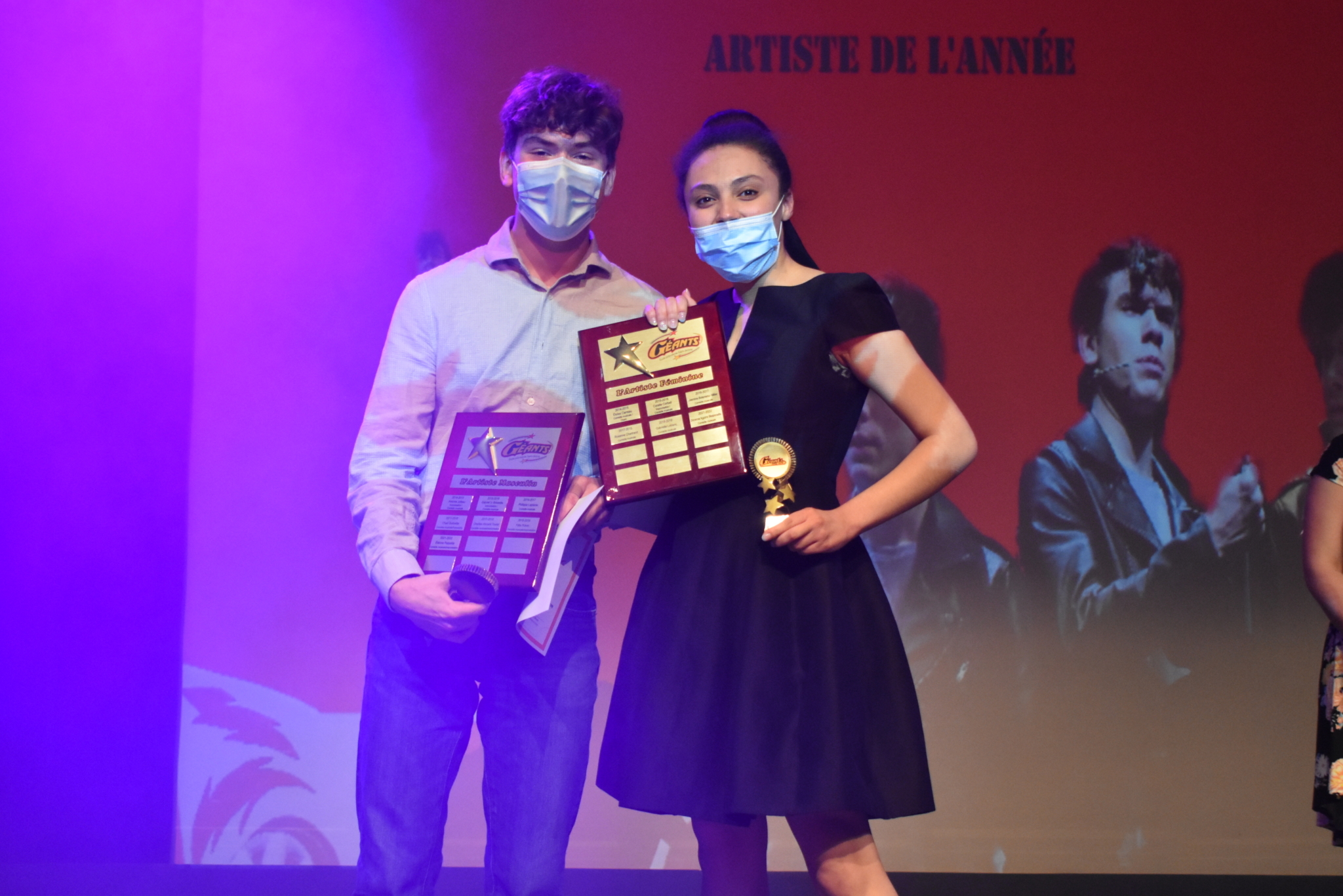 Parmi les grands gagnants, Doranna Aguirre Bissonnette et Étienne Paquette ont raflé les grands honneurs en étant nommés artistes de l’année, tandis que Zaélie Léveillé et Nathan Crousset-Lavigne sont repartis avec les trophées de sportifs de l’année.