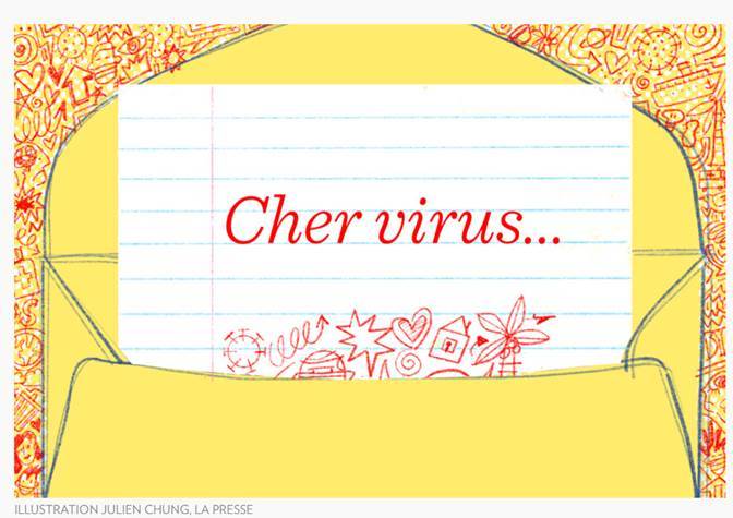 Dans le cadre d'un cours virtuel en français et en réponse de l’appel à tous du journal La Presse « Si vous pouviez vous adresser directement au virus de la COVID-19, que lui exprimeriez-vous ? », deux élèves de la 5e secondaire de l'école Émilien-Frenette, Maeve Grégoire et de Mégane Baril, se sont démarquées par la profondeur de leur texte.