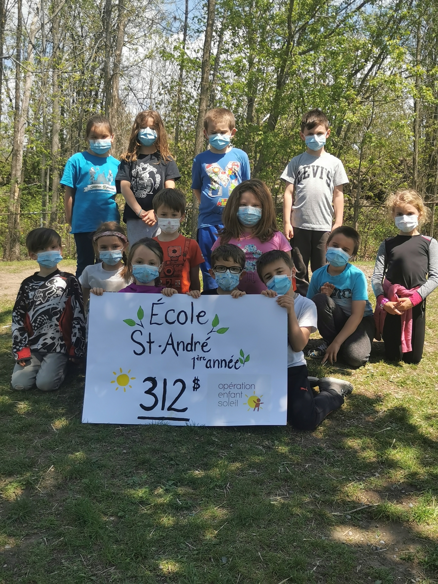 En effet, les élèves de la classe 102 ont vendu les tournesols qu’ils ont eux-mêmes cultivés et ils ont amassé un montant de 312 $. Celui-ci sera remis à Opération Enfants Soleil qui soutient le développement d’une pédiatrie de qualité pour les jeunes québécois.