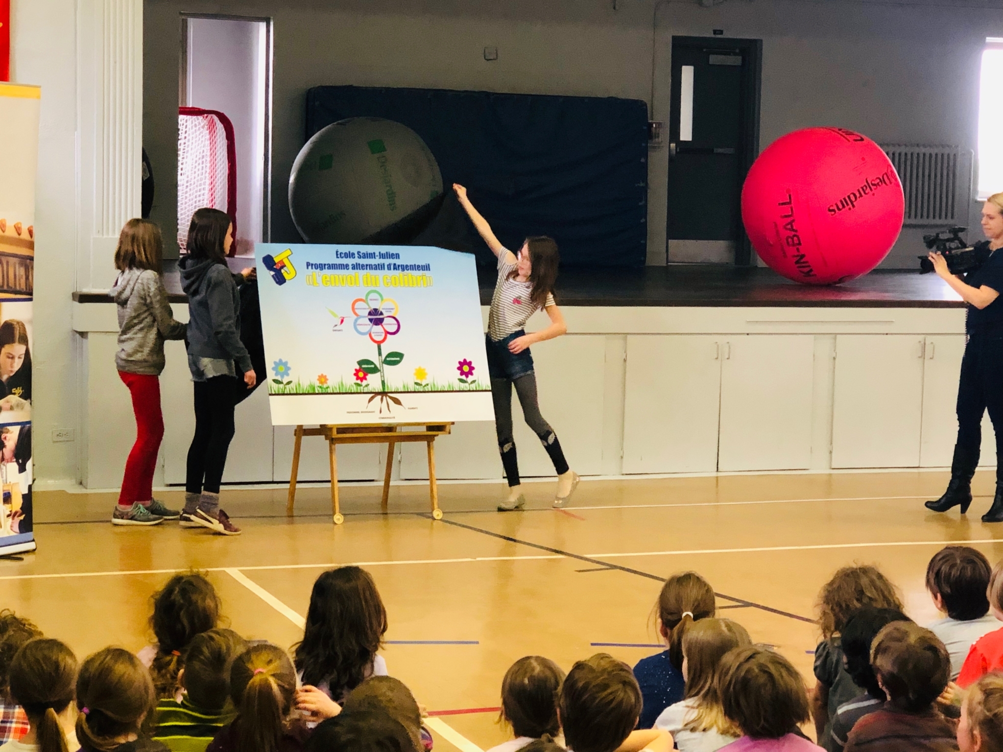 La cérémonie s’est terminée par un rassemblement au gymnase avec toutes les classes de l’école au cours duquel Mme Desroches a fait un discours inspirant. Son discours portait sur la fierté qu’elle éprouve de voir la réussite de l’implantation du programme alternatif parmi le volet régulier de l’école Saint-Julien. Cette réussite démontre encore une fois que les valeurs véhiculées à l'école Saint-Julien sont portées par tous les membres du personnel.
