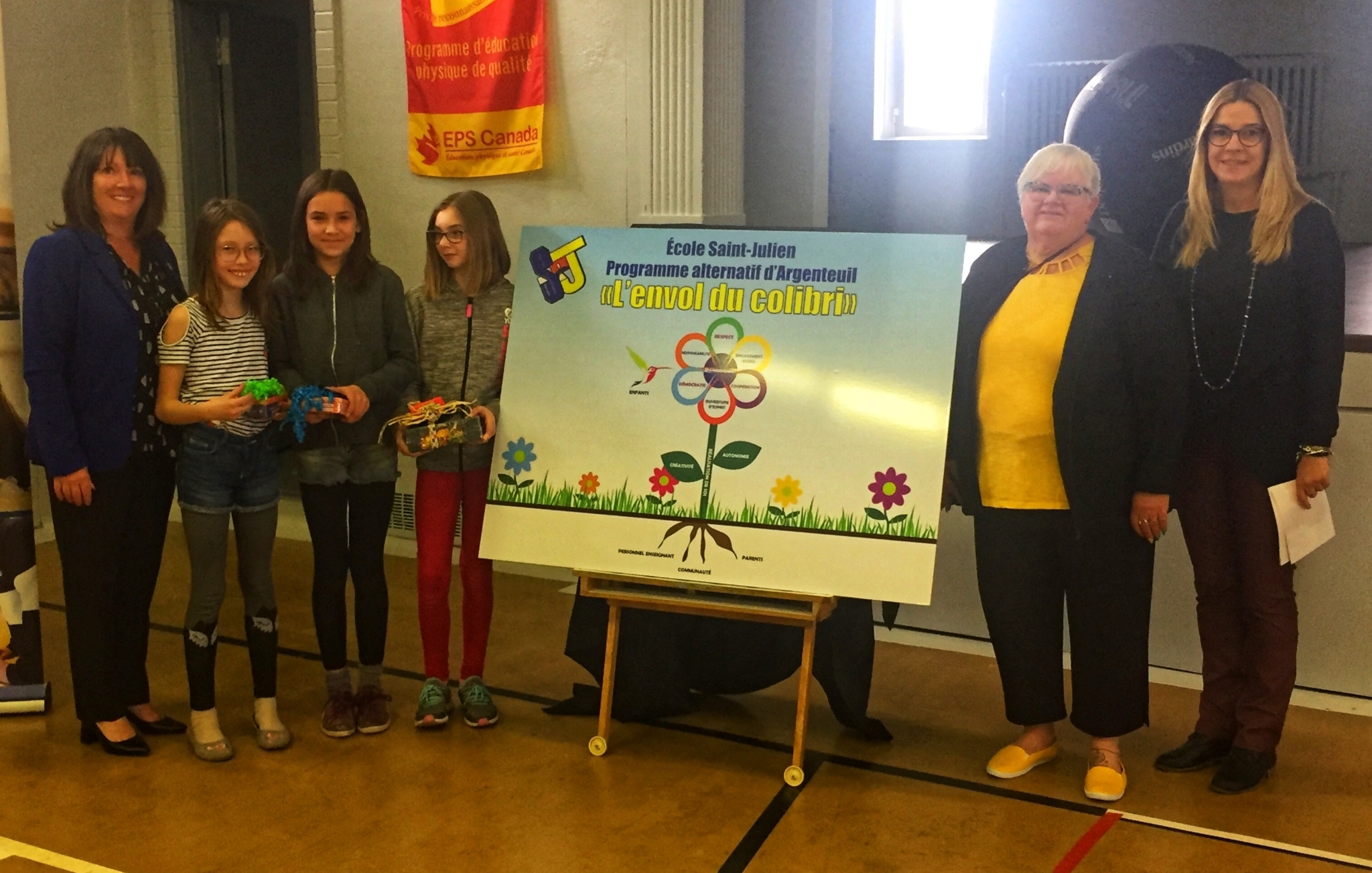 Le nouveau programme alternatif dans Argenteuil, qui cohabite maintenant depuis huit mois avec l’école Saint-Julien, a fait participer ses élèves afin de lui trouver un nom. Quatre noms parmi toutes les propositions ont été retenus. Les parents du volet alternatif ont également pu donner leur avis et c’est au début du mois de mars que s’est tenu le vote final. Les enseignants, les élèves ainsi que les parents du programme alternatif sont fiers d’annoncer que celui-ci se nomme désormais L’envol du Colibri. Bravo aux trois élèves ayant suggéré ce nom qui l’a emporté majoritairement.