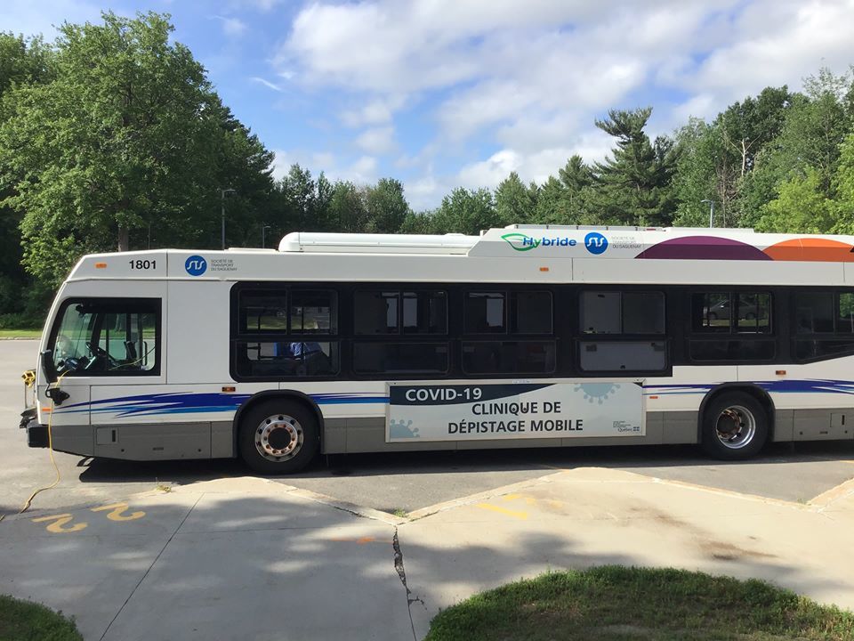 L’autobus transformé en clinique de dépistage par la Société du transport du Saguenay se promène sur le territoire des Laurentides afin d’augmenter la cadence des tests.
