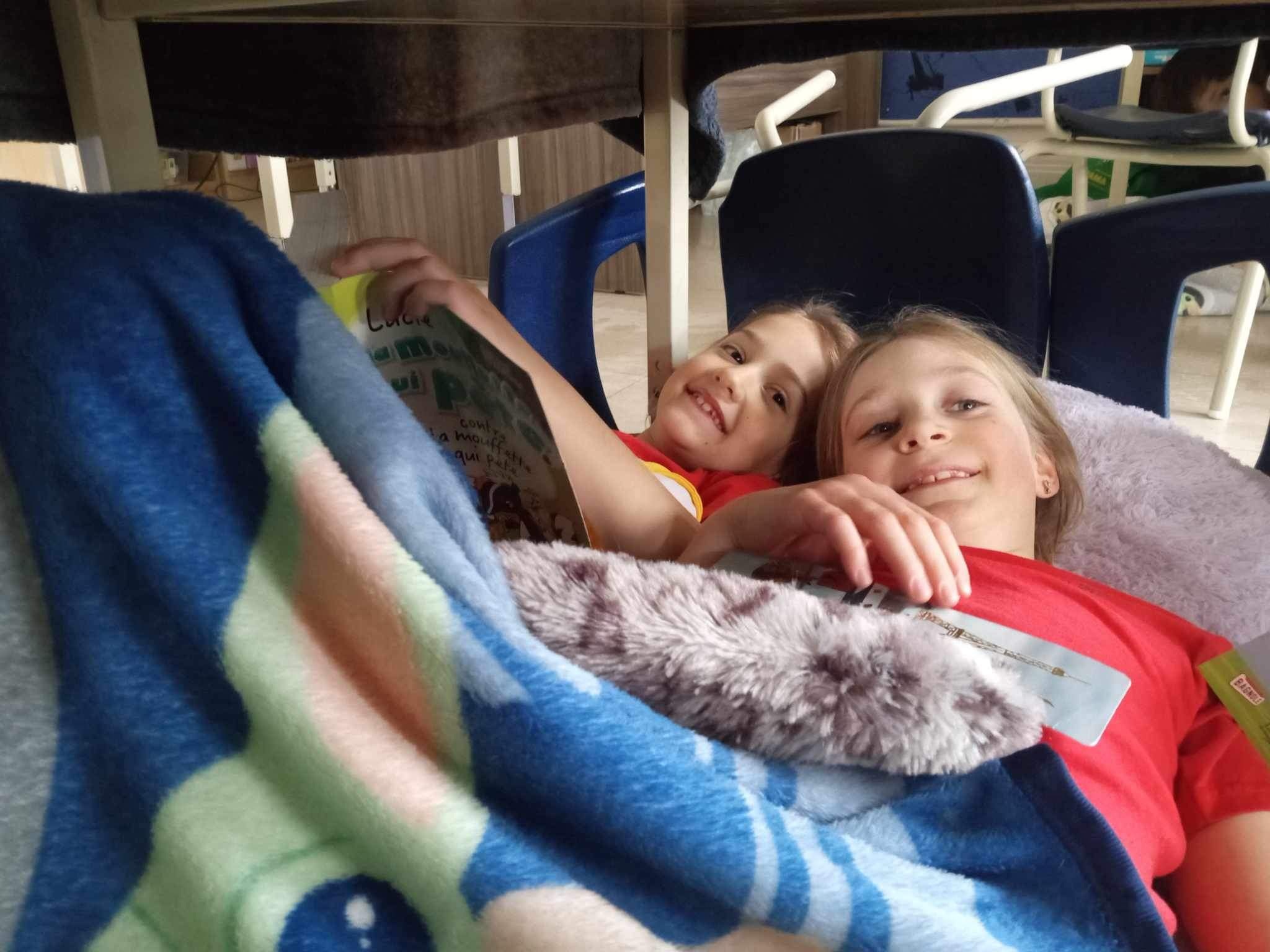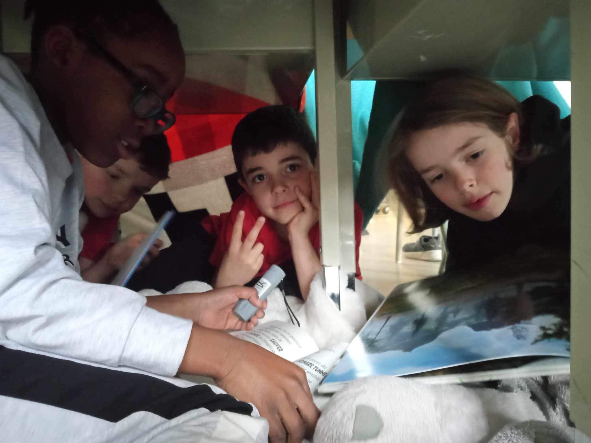 Pour souligner cette belle réussite, tous les élèves, de la maternelle à la 6e année, se sont installés pour lire à différents endroits de nos deux pavillons, dans une ambiance agréable et originale.