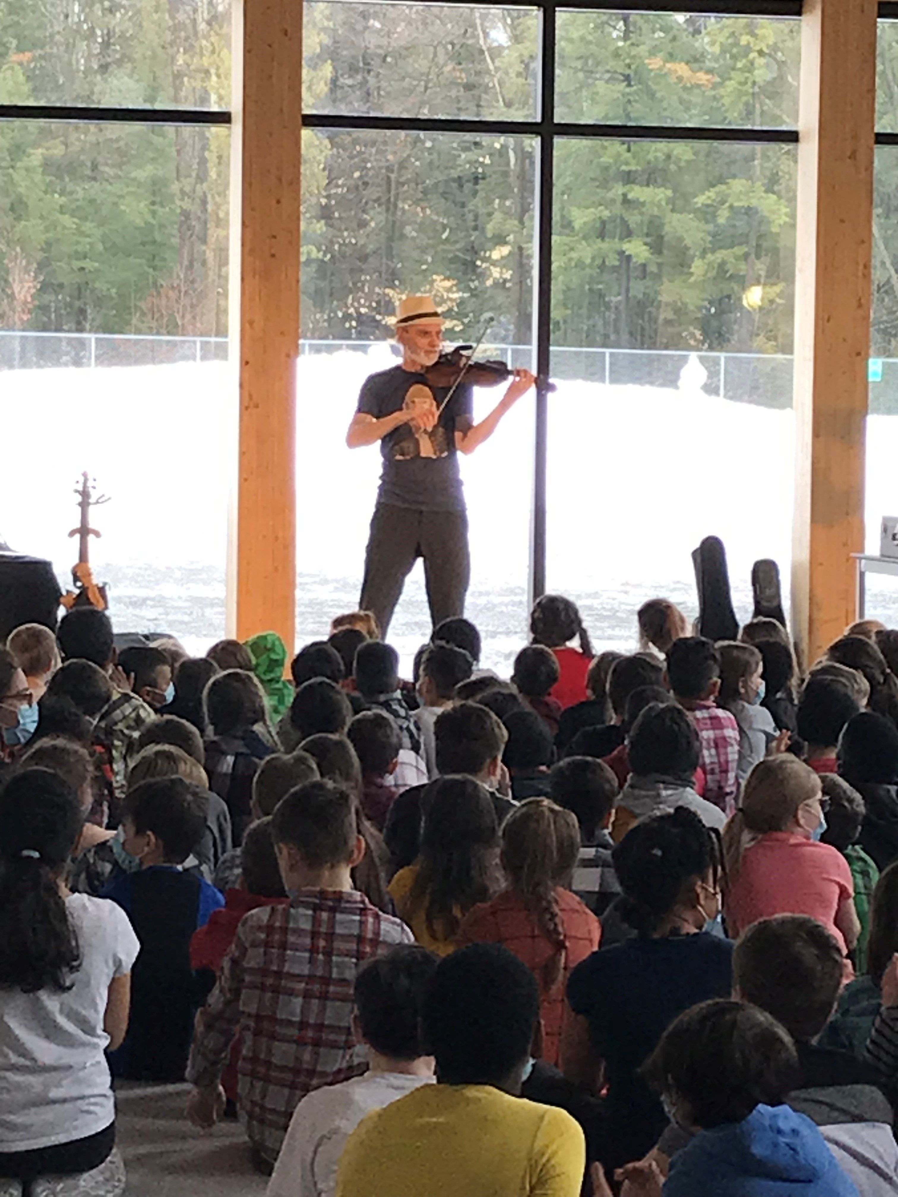 C’est sous le rythme enflammé de notre violoneux que nous avons célébré le début du printemps. Les élèves ont chanté et dansé en compagnie de l’homme fort du violon, Pierre Lessard. De plus, il y a eu distribution de tire sur la neige pour tous.