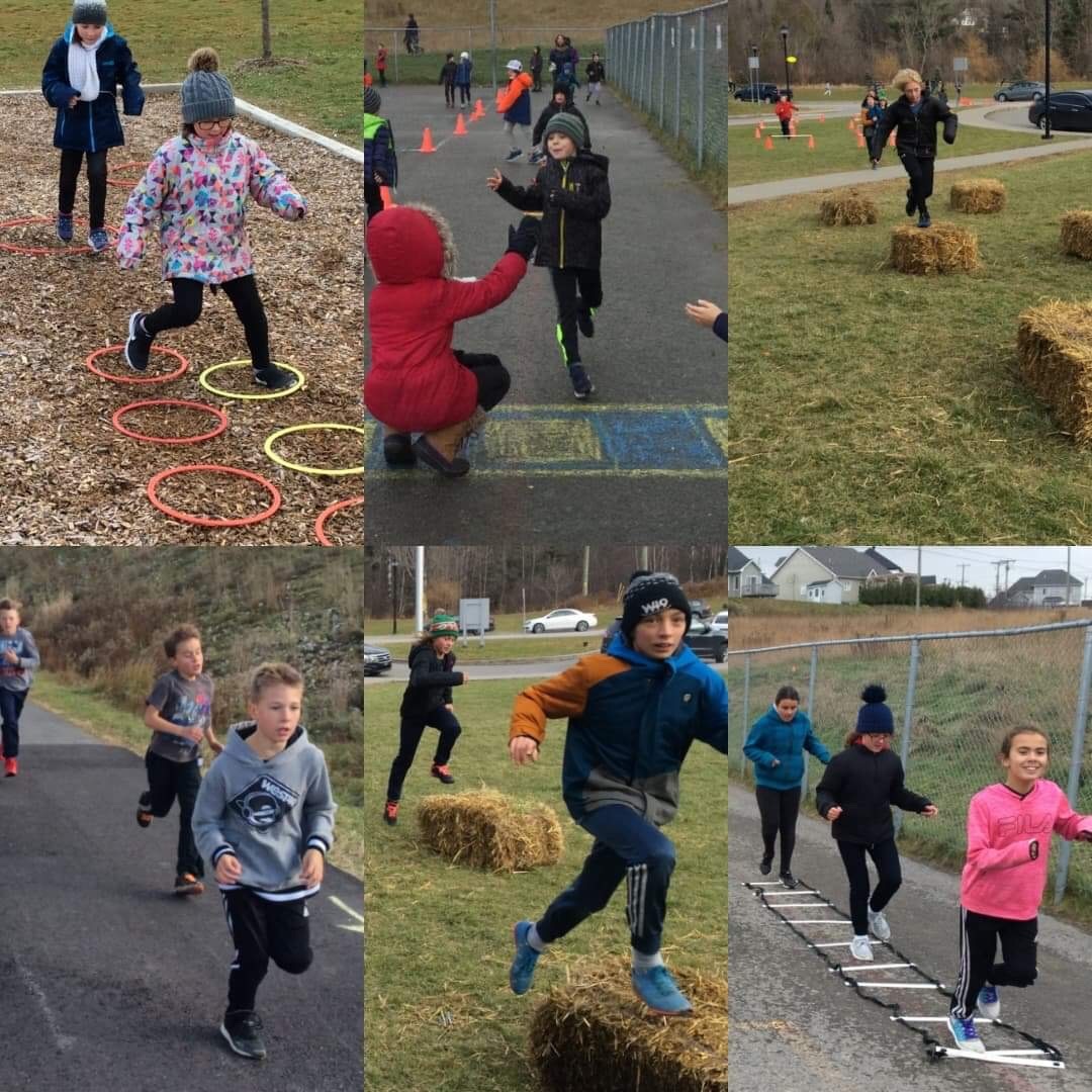 Une activité d’échauffement a été animée par les élèves du 3e cycle sur la cour. Par la suite, tous les élèves ont participé à une course à obstacles agrémenté d’une musique dynamique.