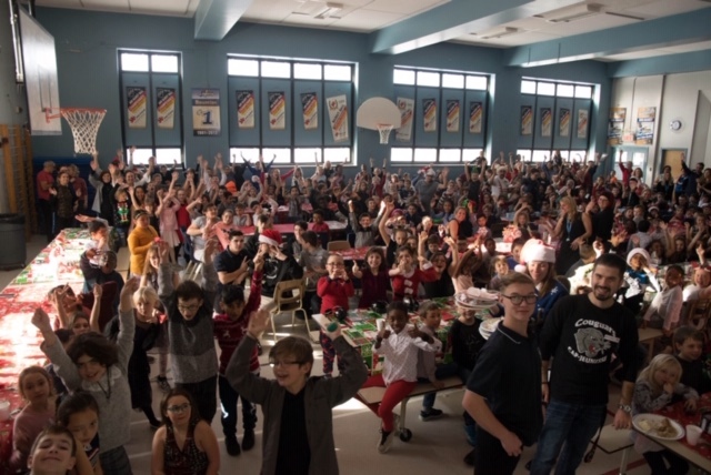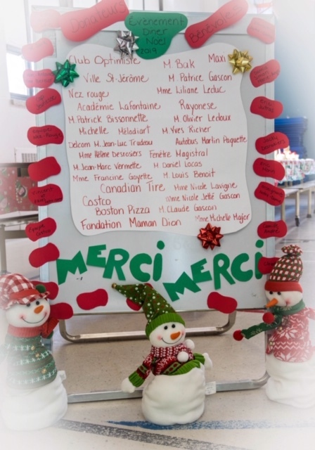 Le jeudi 19 décembre, la responsable du service de garde, Sophie Astri, les éducatrices ainsi que plusieurs bénévoles avaient préparé tout un repas de Noël fait maison pour tous les élèves de l’école.