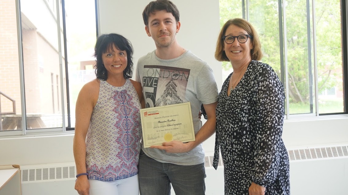 Dans notre carrière, nous rencontrons des élèves d’exception et tu en fais partie. Je suis contente d’avoir suivi mon intuition. Tu démontres une persévérance hors du commun et un comportement exemplaire. Tu mets les efforts nécessaires pour parvenir à ton objectif professionnel. Tu es le principal acteur de ta réussite scolaire.