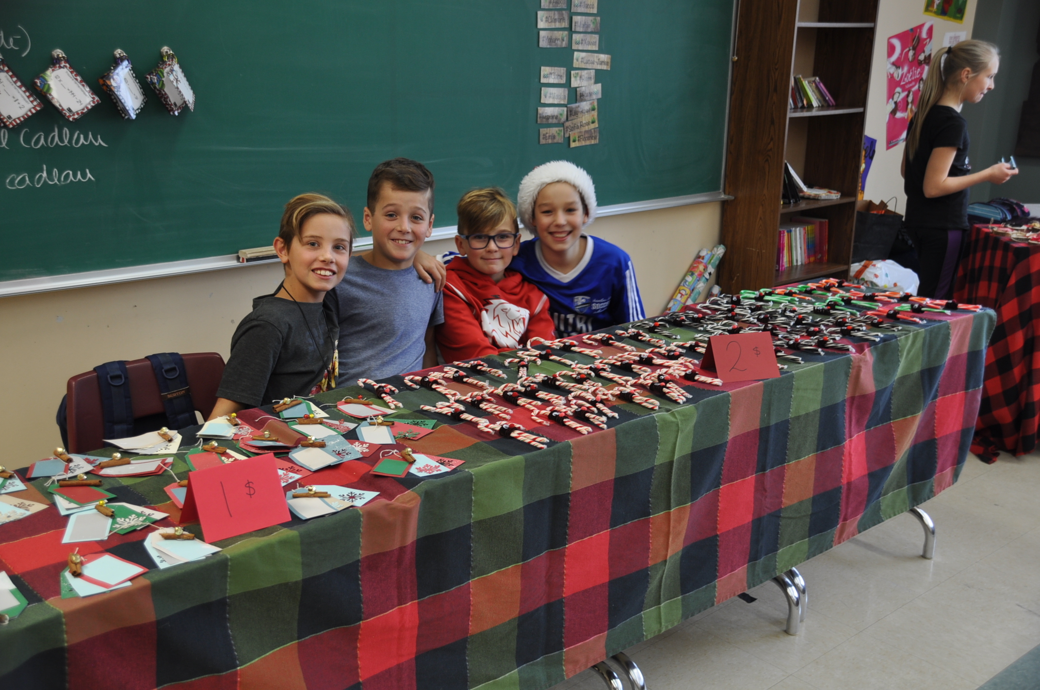Depuis le début du mois de décembre, chaque vendredi, tous ont confectionné divers articles de Noël attrayants, pratiques et gourmands. Le 19 décembre dernier, la porte du marché s'est enfin ouverte. Plusieurs parents et élèves ont répondu à l'invitation. Les yeux brillants de fierté, les artisans de Mme Desloges ont même partagé avec les visiteurs quelques idées espiègles et ingénieuses pour construire des pièges à lutins et un village électrifié de Noël!