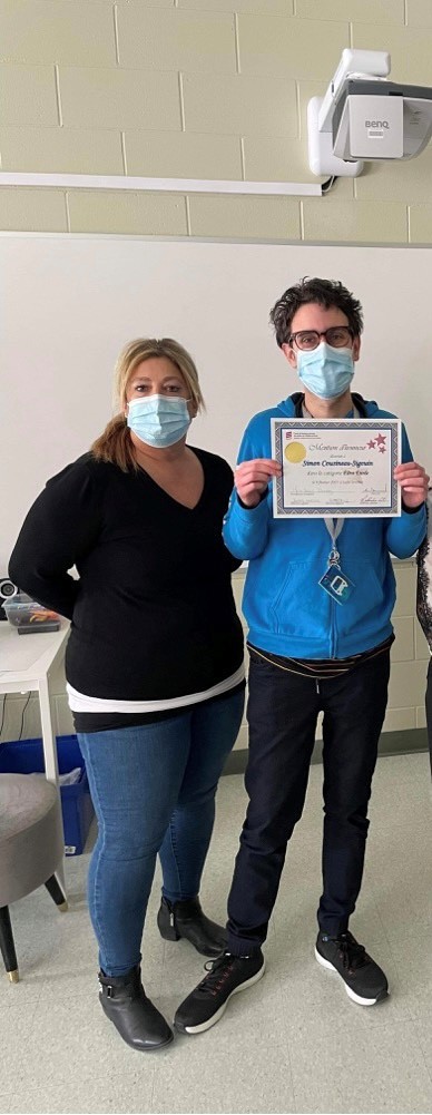 Je m’appelle Simon Cousineau Sigouin et j’aimerais souligner le travail exceptionnel de madame Marie Soleil Tremblay, une enseignante aimable avec ses élèves de l’adaptation scolaire à l’Édifice Marchand.