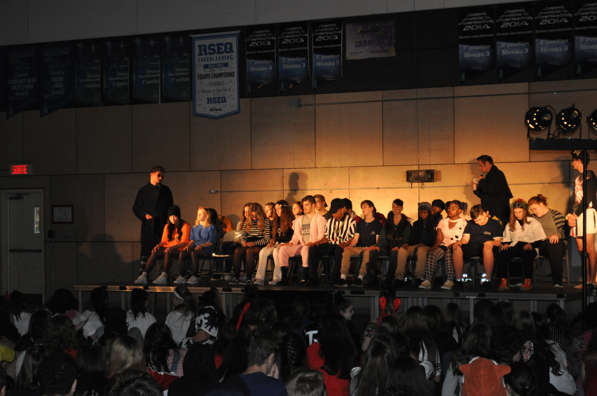 La journée a débuté avec la traditionnelle visite de nos petits voisins de l’école Sainte-Thérèse-de-l’Enfant-Jésus lors de la première période. Des élèves de leadership de la 5e secondaire avaient organisé une danse sur l’heure du dîner au gymnase qui a connu un réel succès. En après-midi, les élèves ont eu droit à deux représentations de l’hypnotiseur Frédéric Clément, soit une pour chaque cycle.