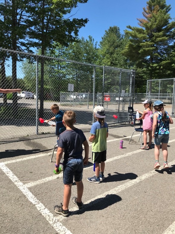 Les élèves ont pu démontrer un autre apprentissage qu’ils ont pratiqué depuis la Covid, soit la manipulation d’un vaporisateur! Nos élèves ont rivalisé de vitesse pour gagner la course. Petits et grands, nous avons eu beaucoup de plaisir!