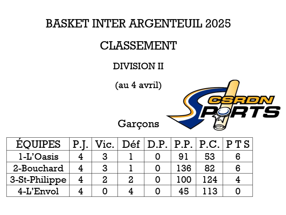 Prochain match: 16 avril à Bouchard contre L'Oasis.