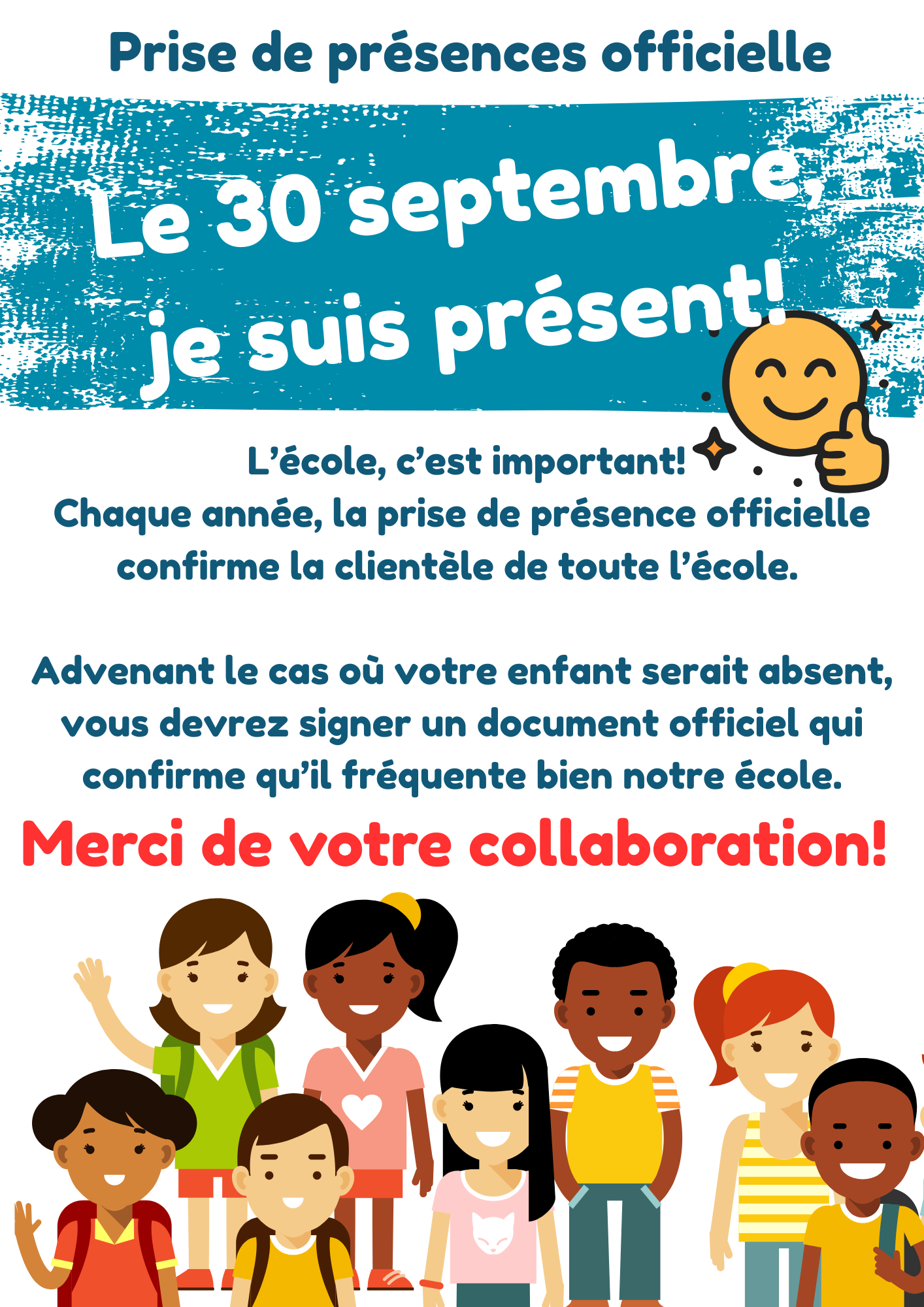 Le 30 septembre, tous à l'école! Prise de présence officielle