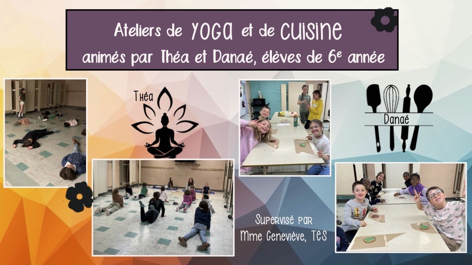 Des grands de 6e année animent certaines activités avec de plus petits lors des récréations. Les premières activités ont été du yoga et de la cuisine.