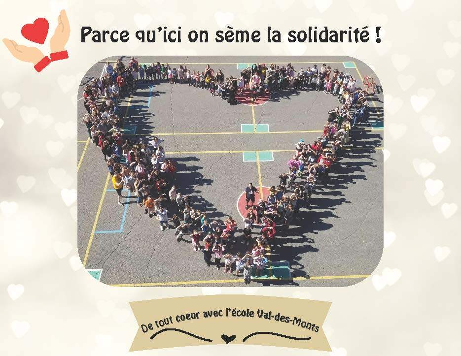 Chers amis, membres du personnel et chers parents de l’école Val-des-Monts,